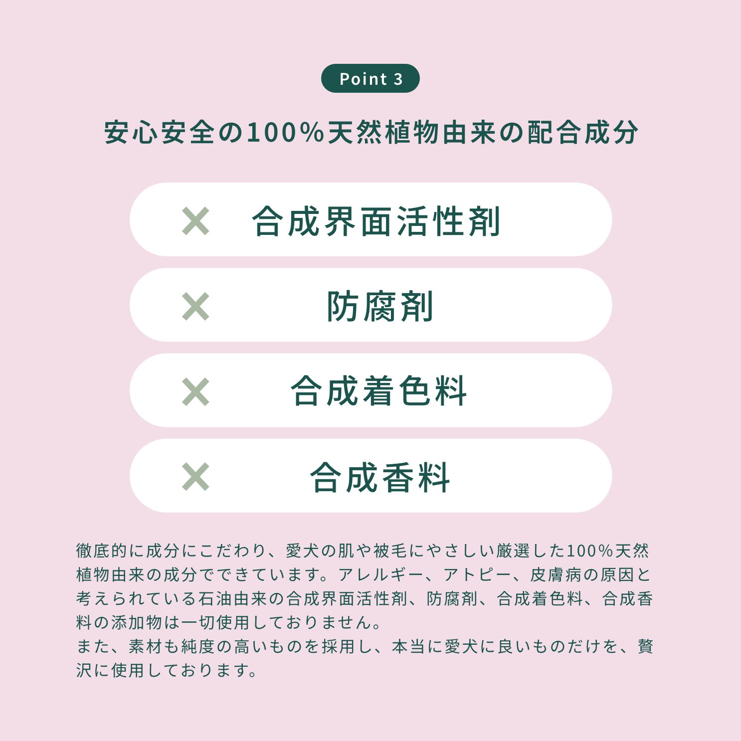 天然植物由来の成分配合で、消臭・除菌・被毛保護の効果がさらに高まり